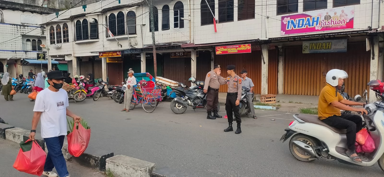 Indragiri Hilir, Lintasliputan. com- Pengamanan memang merupakan tanggung jawab bersama,tetapi dalam hal ini Personil Sat samapta polres Inhil Polda Riau,tetap melaksanakan rutinitas pengamanan,serta pengaturan lalu lintas,tepatnya di Jalan Sudirman tembilahan . Setiap pagi disini masyarakat ramai untuk belanja di pagi harinya.
