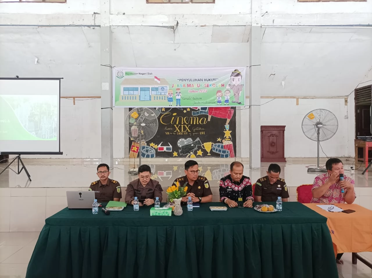 Siak perawang.lintas liputan.comDalam Kegiatan Jaksa Masuk Sekolah tersebut dipimpin langsung oleh Kasi Intelijen Kejari Siak Bpk. Rawatan Manik, SH,MH, dengan materi Cyber Bullying dan Bullying serta Pencegahan Penggunaan Narkotika Sejak Dini.