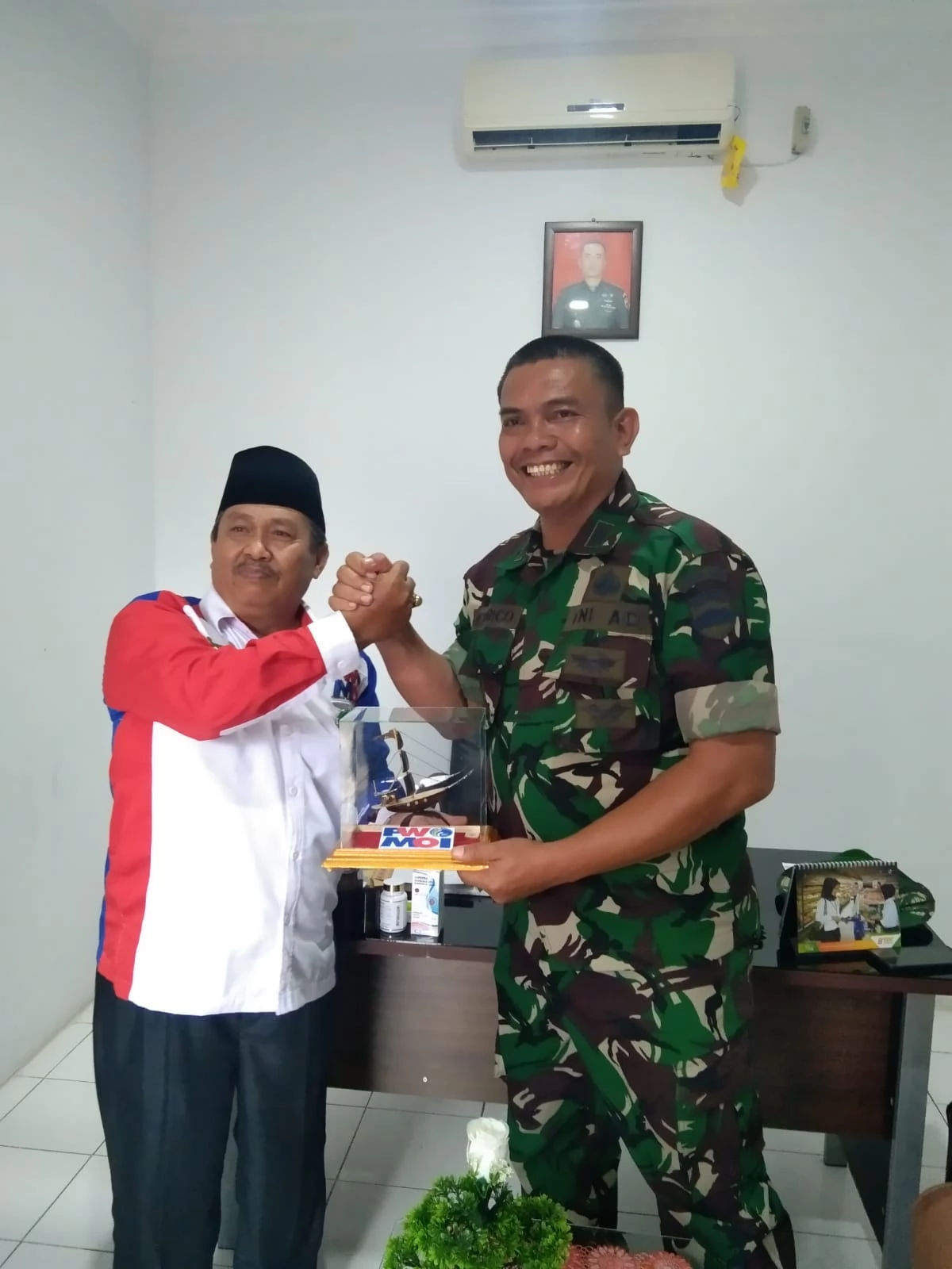Dalam kunjungan tersebut pwmoi bengkalis memberikan oleh - oleh sebagai persahabatan cindera mata berlambangkan perahu layar yang di terima oleh danramil 01 di Bengkalis