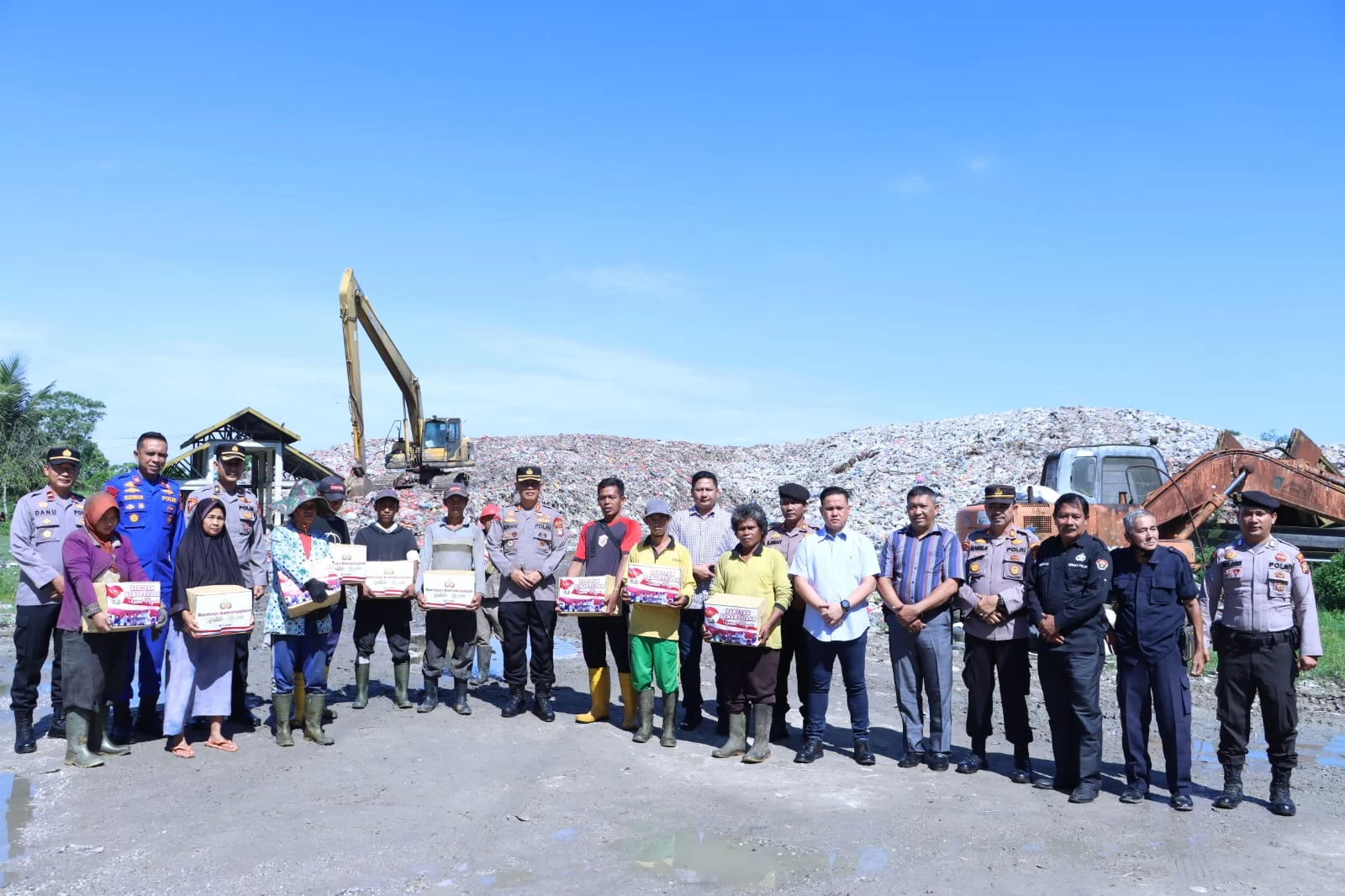 Polres Inhil kembali menyelenggarakan bakti sosial dengan menyalurkan paket sembako kepada para buruh dan pemulung yang beraktifitas, Selasa (28/3) pagi, di Tempat Pembuangan Akhir (TPA) Kelurahan Sungai Beringin, Kecamatan Tembilahan Kota.
