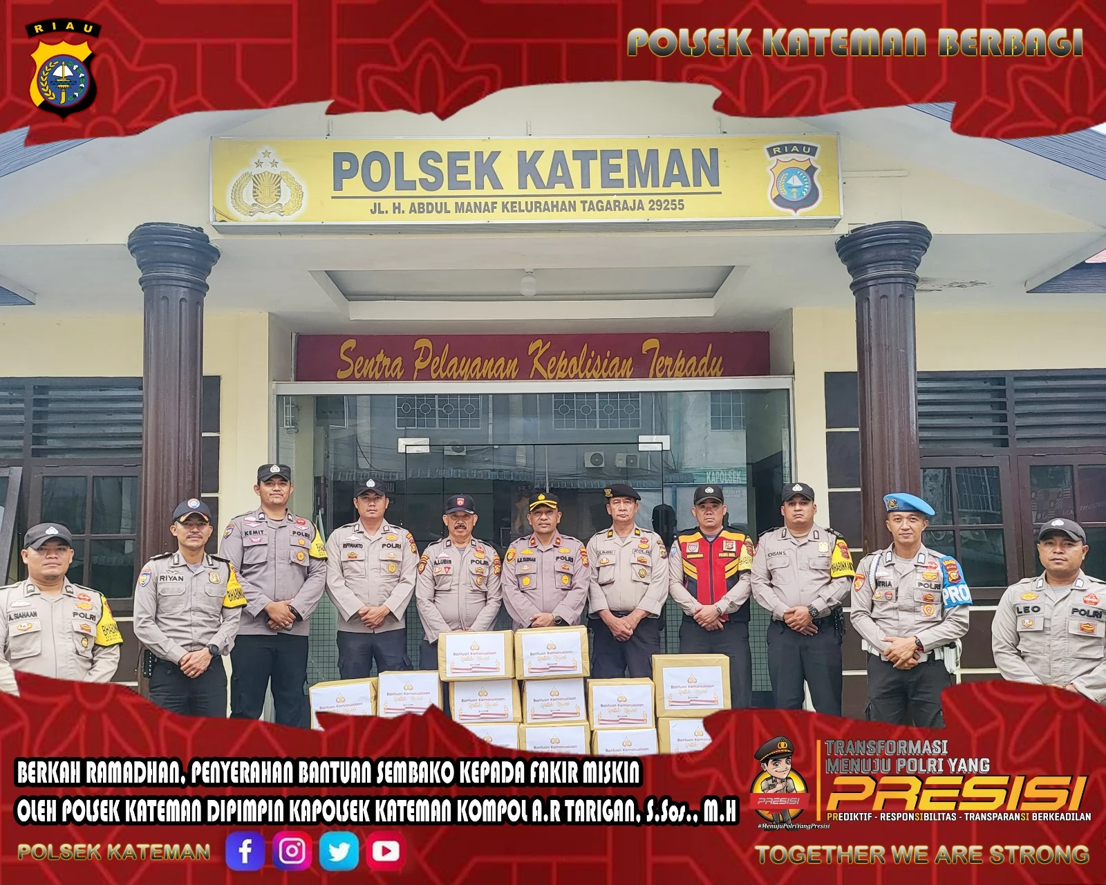 Pembagian sembako ini kata Kompol AR Tarigan, selian merupakan program berkah ramadan Polsek Kateman, hal ini juga merupakan salah satu wujud kepedulian serta kecintaan polri terhadap masyarakat.