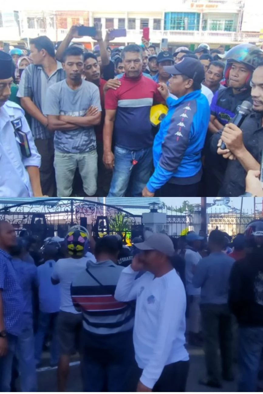 "Kami mewakili pemerintah akan meneruskan dan menindaklanjut tuntutan bapak/ibu ke pihak-pihak terkait," kata Johan didepan massa.