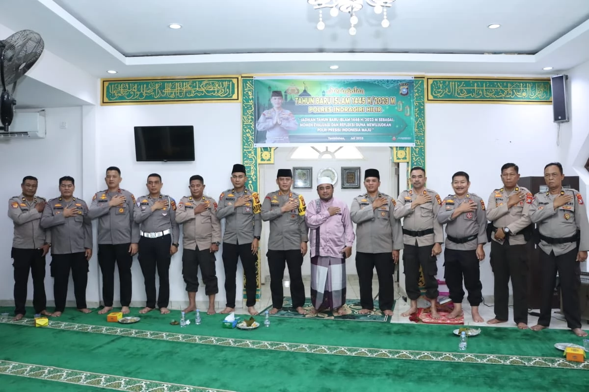 INHIL- Lintasliputan. Com-Polres Inhil melaksanakan kegiatan peringatan Tahun Baru Islam 1 Muharram 1445 Hijriah tahun 2023 masehi, Kamis (20/7), di Mesjid Al Ma'arif Mapolres Inhil.