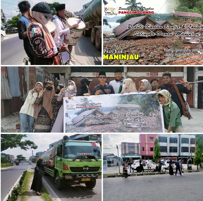 Duri – Mendengar kabar duka dari Maninjau kecamatan Tanjung Raya Kabupaten Agam Provinsi Sumatera Barat tepatnya Nagari Kotomalintang dan Tanjungsani, sanggar tari dan grup tambua panglimo Campo lakukan penggalangan dana untuk membantu meringankan beban para korban bencana alam. Bencana ini dipicu oleh tingginya curah hujan yang mengguyur wilayah sekitar,sejak Kamis (13/7/2023) malam hingga Jumat (14/7/2023) pagi yang mengakibatkan terjadi banjir dan longsor.