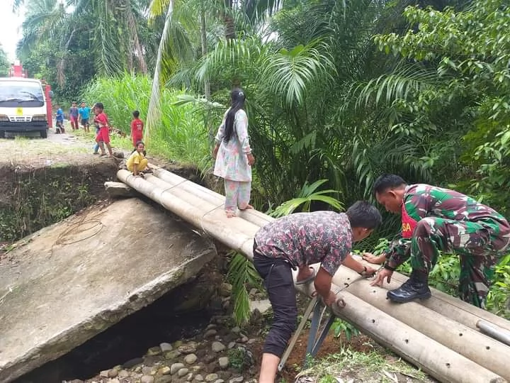 "Karena kebutuhan penyebrangan masyarakat baik aktifitas anak-anak mengaji dan sholat tarwih ketika bulan ramadhandi mushalla tersebut maka masyarakat setempat secara swadaya bergotong royong membangun jembatan darurat sementara," Ungkap Yuheldi.