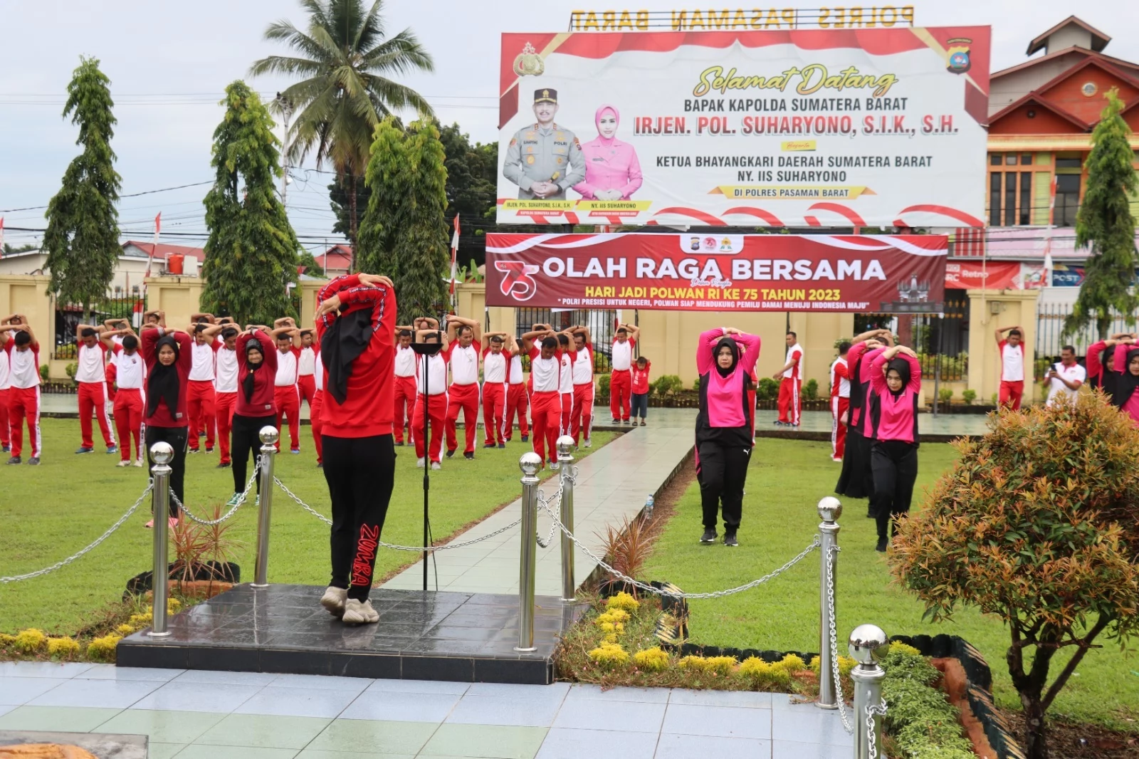 Lintasliputan.com,. Pasaman Barat. | Dalam rangka memperingati Hari Jadi Polwan Republik Indonesia yang ke-75 tahun 2023, jajaran Polres Pasaman Barat menyelenggarakan acara olahraga Bersama Polwan, ibu-ibu Bhayangkari serta seluruh personel di halaman Mapolres Pasaman Barat, Sabtu pagi (19/08/2023).