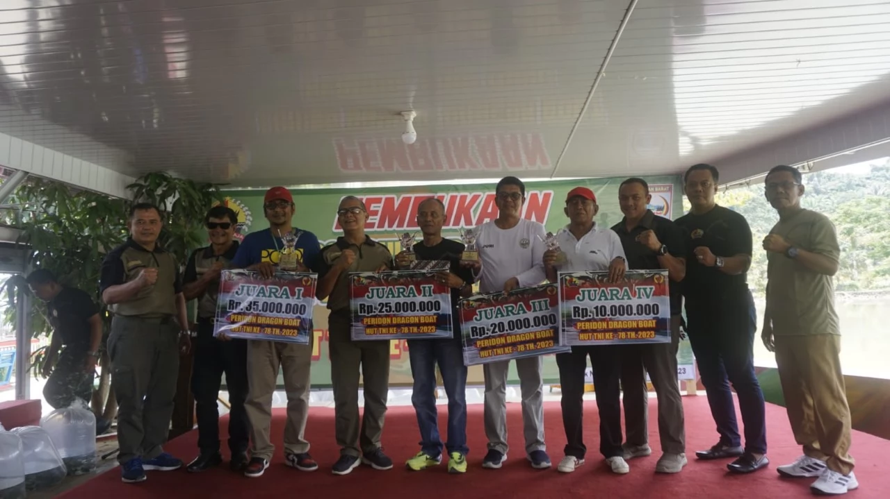 Pasbar(Lintasliputan.com) _ Lomba Dayung Dragon Boat dalam rangka memeriahkan HUT TNI ke-78 tahun 2023 yang berlokasi di Peridon Siap Maju Aek Nabirong Kecamatan Koto Balingka, pada Selasa (26/9) resmi ditutup secara langsung oleh Danrem 032/Wirabraja Brigjen TNI Rayen Obersyl. Tim dari Persatuan Olahraga Dayung Seluruh Indonesia (PODSI) Kota Padang berhasil meraih juara I, juara II diraih oleh TNI-AL, juara III oleh Podsi Agam, dan Harapan I diraih oleh Podsi Sijunjung.