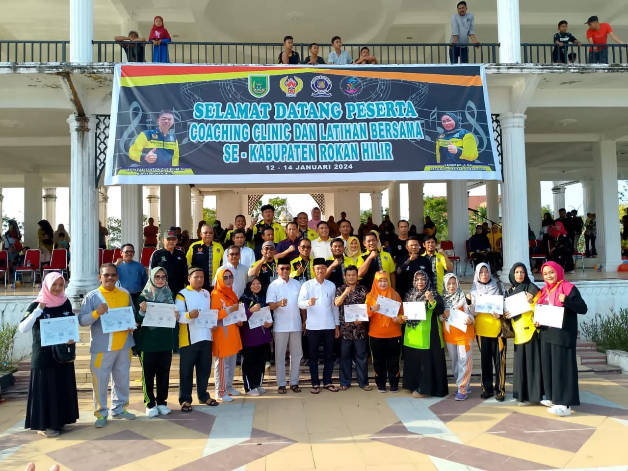 Rohil lintasliputan com– Bupati Rokan Hilir, Afrizal Sintong menutup secara resmi coaching clinic latihan bersama Marching Band Se-kabupaten Rokan Hilir pada hari Minggu (14/1/2024) di taman budaya, KM 6 Bagansiapiapi, Kabupaten Rokan Hilir, Riau. Beliau mengungkapkan harapannya bahwa dengan latihan intensif selama clinic ini tidak hanya meningkatkan keterampilan, tetapi juga memupuk semangat untuk mencapai prestasi yang lebih tinggi.