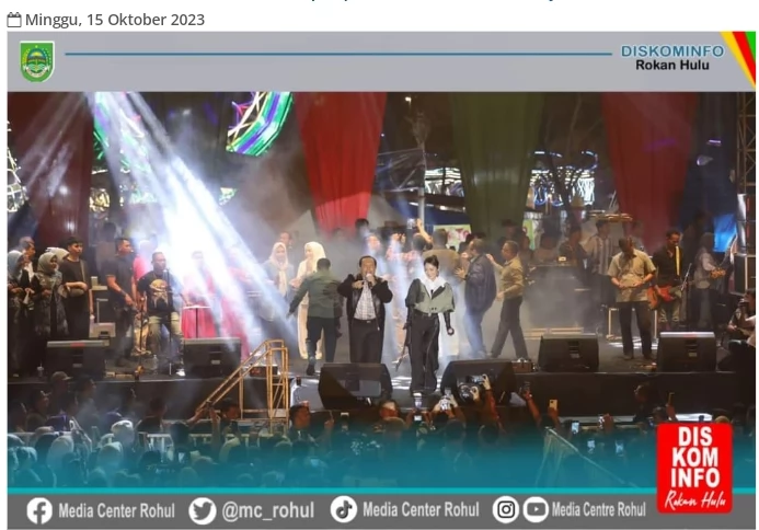 Puncak Kemeriahan HUT Rohul Ke 24 Tahun 2023 ini dengan dihibur Berbagai Artis Viral saat ini salah satunya Artis Ibu Kota Siti Badriah, Mardon Dangdut Akademi Indosiar, serta artis lainnya, dimalam puncak, Sabtu, (14/10/2023). Meski Sebelumnya sempat ada Penolakan dari beberapa Pihak untuk menghadirkan Siti Badriah namun dimalam puncak ini terlihat ratusan ribu masyarakat menyambut dengan baik penuh suka ria perayaan malam puncak HuT Rohul ke 24.
