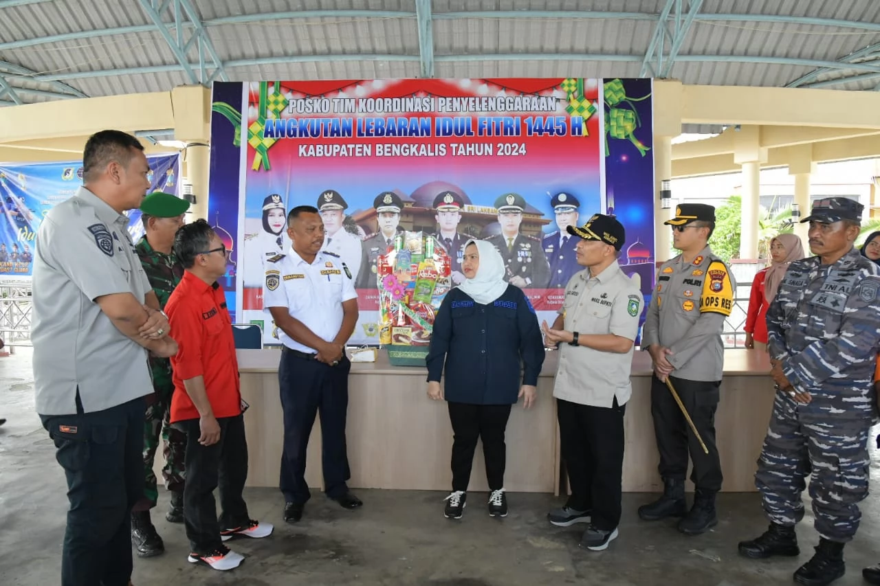 Lintas liputan,com. BENGKALIS - Untuk memastikan kondisi Mudik dan Balik Lebaran Idul Fitri 1445 Hijriyah berjalan aman dan lancar Bupati Bengkalis Kasmarni melakukan peninjauan Posko di Pelabuhan Bandar Sri Laksamana Bengkalis dan Pelabuhan Roro, Air Putih, Senin, 8 April 2024.