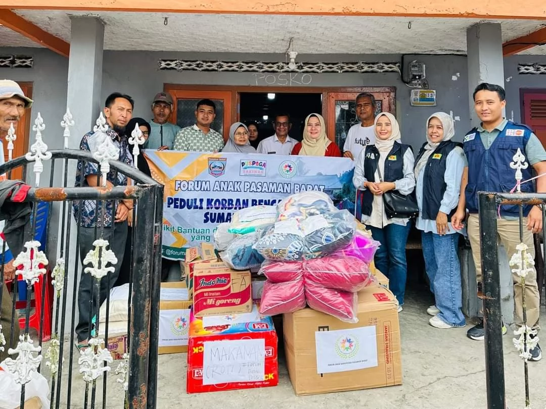Forum Anak Kabupaten Pasaman Barat menyalurkan bantuan berupa baju layak pakai, perlengkapan mandi, selimut, bantal dan guling, beras, telur, obat-obatan serta makanan ringan untuk anak-anak.