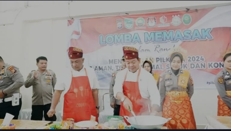 Rokan Hulu—Wujudkan Pilkada Tahun 2024 yang aman tertib, damai, sejuk dan kondusif, lewat Cooling System Kapolres Rokan Hulu (Rohul) AKBP Budi Setiyono SIK MH, dengan mengelar Lomba memasak antar Calon Bupati-Wakil Bupati Rohul, Selasa (10/9/2024) sekitar pukul 11.30 Wib di Lantai II Hotel Gelora Pasir Pangaraian.