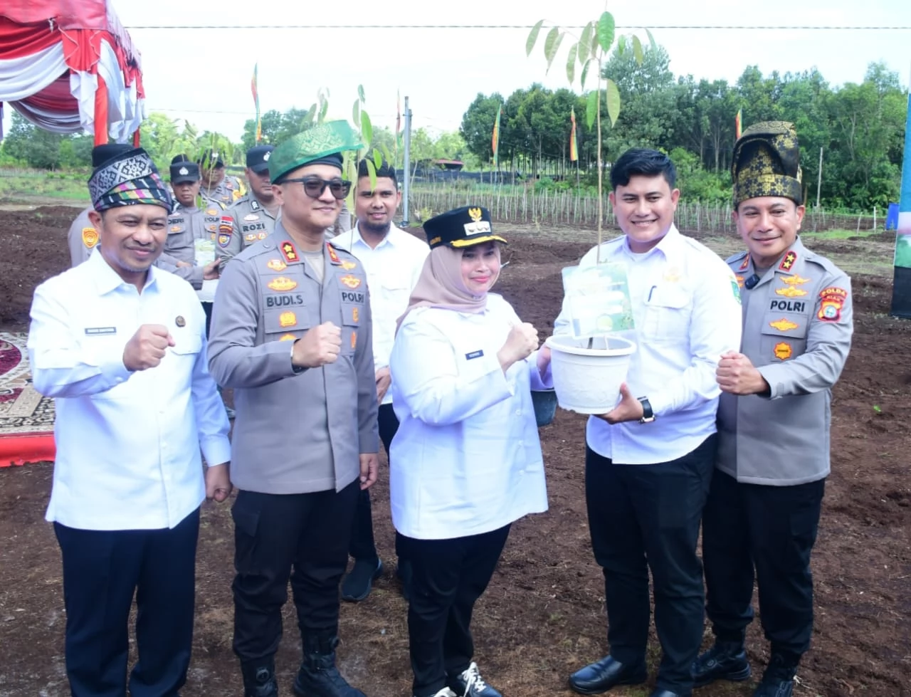 Lintas liputan.com. BENGKALIS - Bupati Bengkalis Kasmarni dan Kapolda Riau Irjen Pol Herry Heryawan menanam pohon Geronggang di Kampung Tangguh Polres Bengkalis, di Jalan Poros Sungai Alam, Rabu, 16 April 2025.