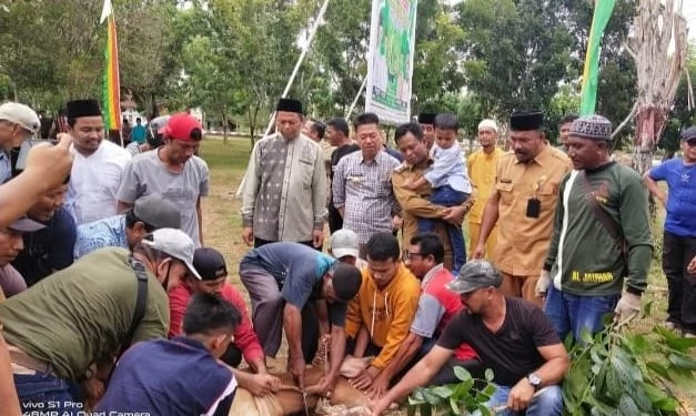 ROHIL,Lintasliputan.com – Dinas Lingkungan Hidup (DLH) Kabupaten Rokan Hilir (Rohil) sembelih 15 Hewan Kurban pada idul Adha 1446 H/ 2025 M Sudah termasuk bantuan kurban lembu Bupati H.Bistamam, wakil Bupati Jhony Charles dan Pj.sekda Ferry H.Parya.