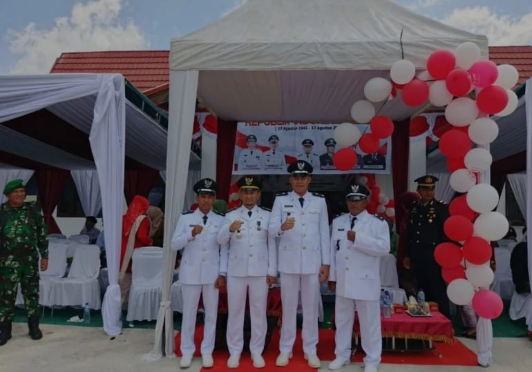 Upacara dipimpin langsung oleh Camat Bonai Darussalam, Elfitren Saputra, S.Kom., M.IP, sebagai inspektur upacara. Momen sakral ditandai dengan pembacaan teks Proklamasi oleh Ilham Marzuki, anggota DPRD Rokan Hulu dari Fraksi Golkar, serta pengibaran bendera Merah Putih oleh Pasukan Paskibraka kecamatan yang berlangsung penuh haru. Lagu Indonesia Raya bergema, diikuti hormat serentak seluruh peserta, menciptakan suasana penuh makna dan pengingat akan jasa para pahlawan bangsa.