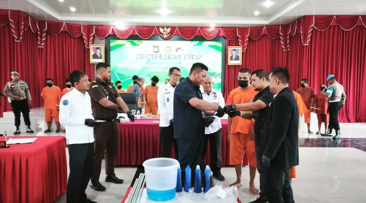 Acara konferensi pers dan pemusnahan barang bukti ini turut dihadiri perwakilan dari Kejaksaan Negeri Kampar, Pengadilan Negeri Bangkinang, Lapas Kelas IIA Bangkinang, dan Badan Narkotika Kabupaten (BNK) Kampar.