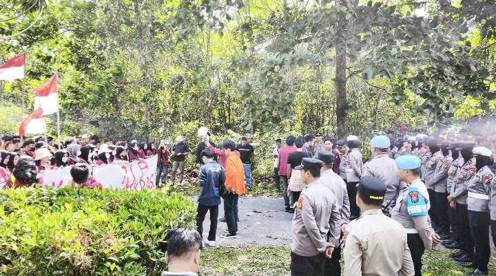 Koordinator lapangan massa aksi, Maulana, menyampaikan bahwa kehadiran mereka adalah untuk menyampaikan aspirasi secara damai tentang keresahan masyarakat Kampar.