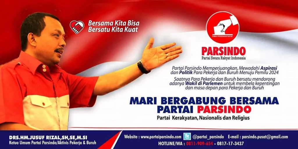 “Partai Parsindo, menampung dan memperjuangkan aspirasi rakyat. Termasuk aspirasi politik kaum pekerja dan buruh. Dan melalui jaringan Partai Parsindo selama ini sudah banyak berjuang untuk kepentingan masyarakat,” tegas Jusuf Rizal.( rilis/ Abdul Hamid)