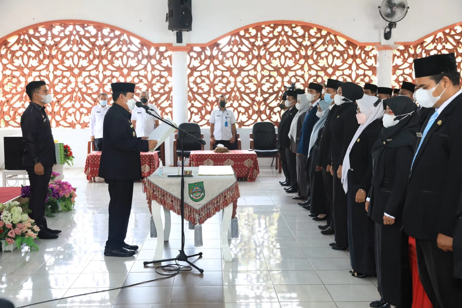 Lintasliputan.com | Rohul - Bupati Rokan Hulu (Rohul) H. Sukiman resmi melantik dan mengambil sumpah jabatan Kepala Sekolah Sekolah Menengah Pertama (SMP), Sekolah Dasar (SD) dan Taman Kanak (TK) dilingkungan Pemkab Rohul, di Pendopo Rumdis Bupati, Rabu (20/4/2022).