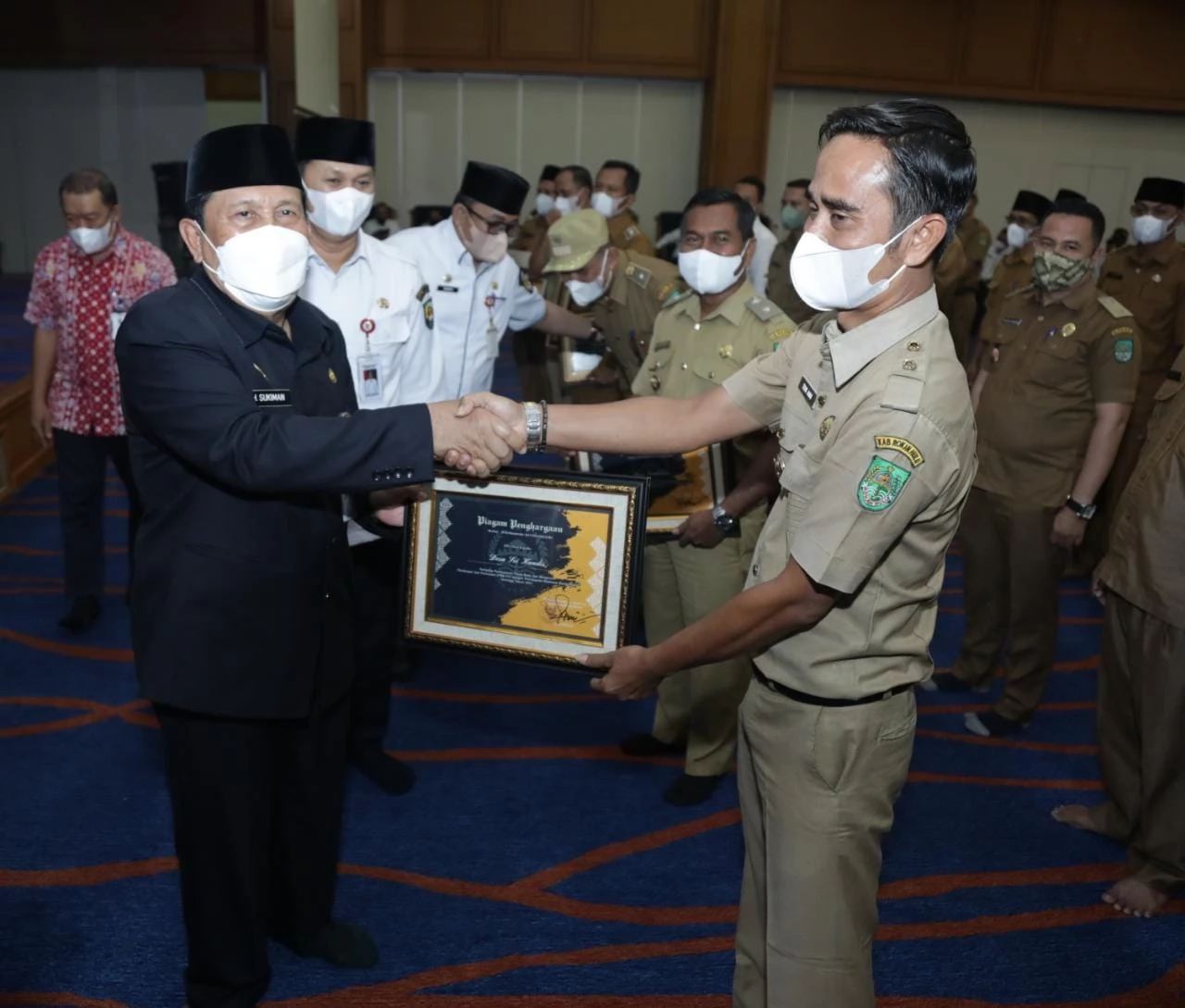 Rohul - Dalam agenda penyerahan Surat Pemberitahuan Pajak Terhutang Pajak Bumi dan Bangunan Perdesaan Perkotaan (SPPT PBB - P2) Tahun 2021, Bupati Rokan Hulu (Rohul), H Sukiman ajak seluruh Kades dan Lurah se Kabupaten Rokan Hulu untuk meningkatkan pembangunan Desa melalui pemungutan pajak.