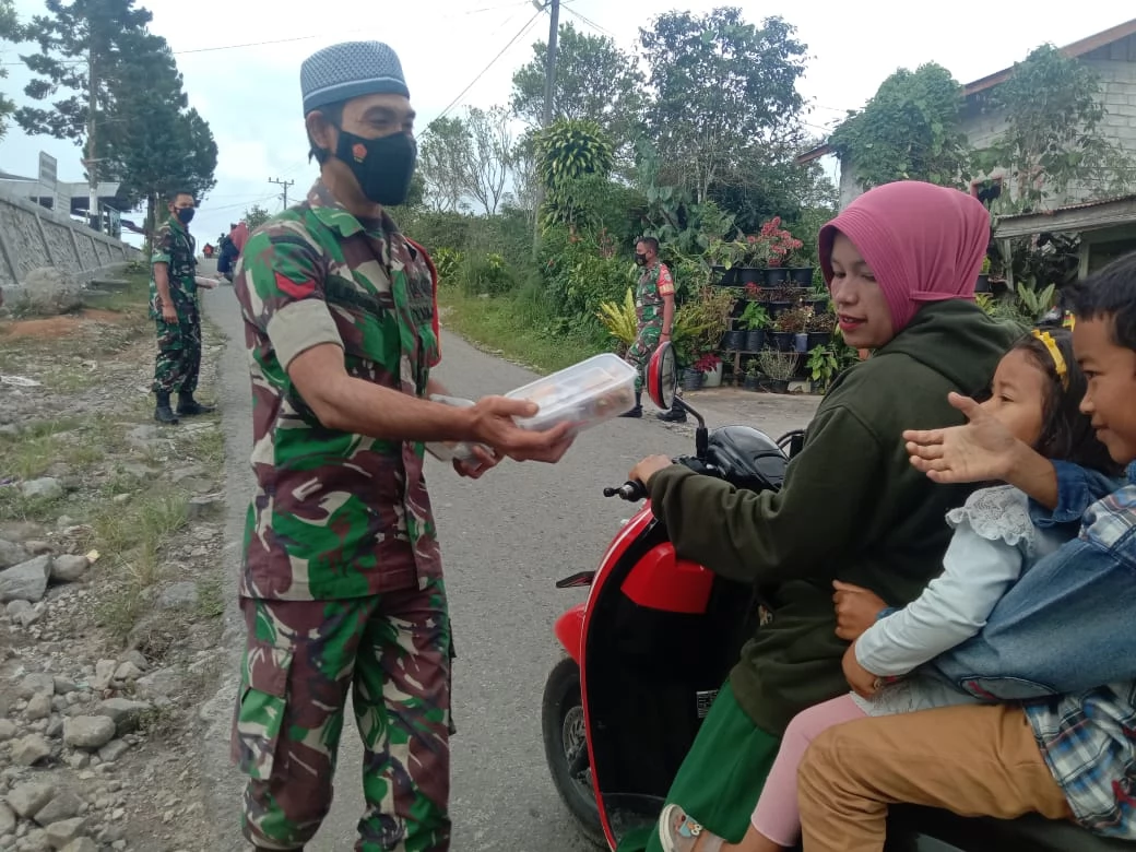 Redelong - Personel Kodim 0119/BM melalui Koramil 05/Permata kembali membagikan takjil kepada masyarakat dan pengendara di sekitaran Makoramil setempat, Jalan Ramung-Jelobok Desa Pemango Kecamatan Permata Kabupaten Bener Meriah. Selasa 26/04/2022