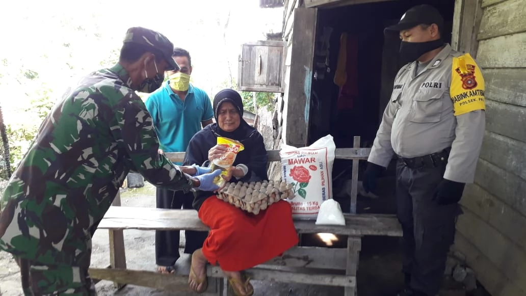 Redelong - Kepedulian Babinsa bekerja sama Bhabinkamtibmas memberikan bantuan masyarakat binaan. Bantuan tersebut berupa sembako kepada salah satu masyarakat tidak mampu tepatnya di Desa Perdamaian kecamatan Pintu Rime Gayo Kabupaten Bener Meriah" Minggu 08 /05/2022