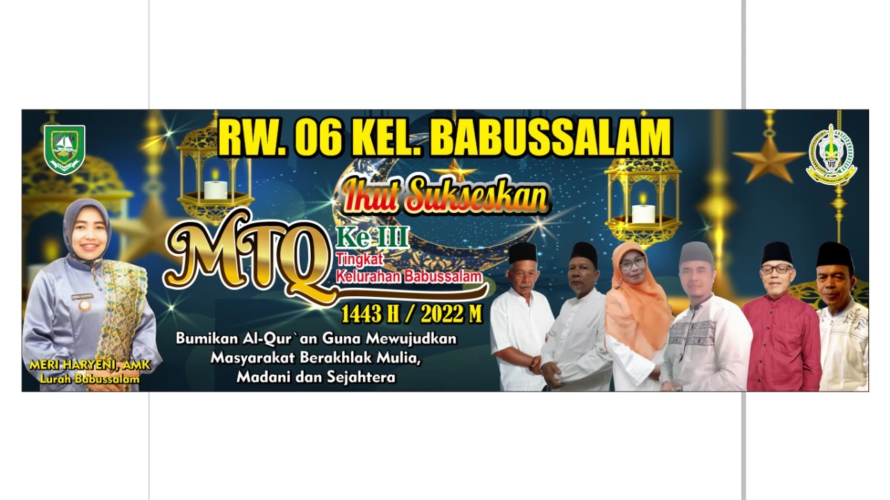 Duri - Pada hari Minggu tanggal 3/7/22 . tempat di jln Cendana RW 4 lapangan kuning Nusantara satu pawai ta'ruf musabaqah Tilawatil Qur'an (MTQ) KE III ,RW 6 meramaikan pawai dengan menjadi perserta Pawai MTQ Ke-III Tingkat Kelurahan babussalam kecamatan Mandau Kabupaten Bengkalis Provinsi Riau dimulai dengan Pawai Ta'ruf yang diikuti oleh seluruh kafilah dan masyarakat Kelurahan babussalam kecamatan Mandau dengan garis start dari jln Cendana RW 4 lapangan kuning Nusantara satu dan Finish di Mesjid As-salam Hangtuah, Minggu (3/07/22).