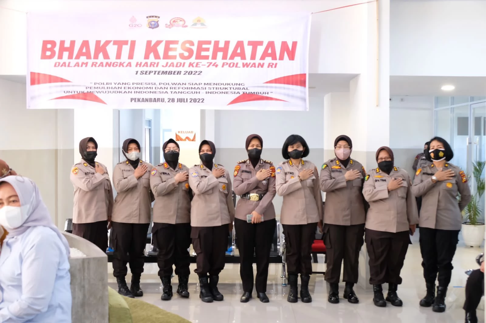 “Mengusung tema ‘Polri Yang Presisi, Polwan Siap Mendukung Pemulihan Ekonomi Dan Reformasi Struktural Untuk Mewujudkan Indonesia Tangguh Indonesia Tumbuh’ kami Polwan Polda Riau ingin memberikan pelayanan yang terbaik bagi masyarakat, termasuk harus ikut andil dalam kenaikan persentase vaksinasi booster,” ujar Kombes Retno.