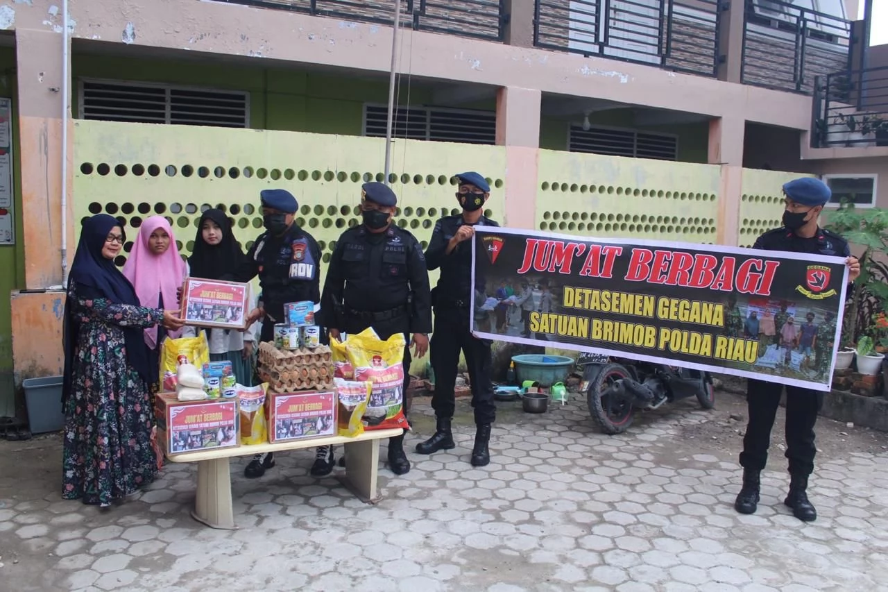 Komandan Detasemen Gegana Satuan Brimob Polda Riau Kompol Arvin Hariyadi, S.I.K., mengatakan kegiatan ‘Jum'at Berbagi’ merupakan kegiatan rutin dilaksanakan.