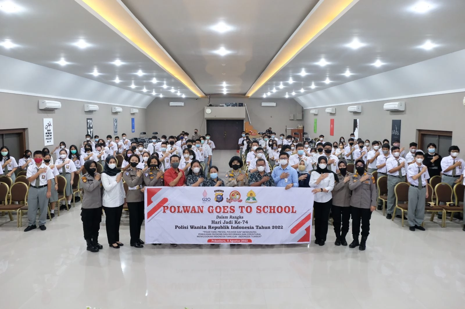 PEKANBARU,lintasliputan.com - Sempena hari ulang tahunnya awal September nanti, Polisi Wanita (Polwan) Polda Riau digawangi Kepala Bidang Keuangan Kombes Retno Dwiyanti SE dan tim, sambangi sekolah dan menggelar ‘Polwan Goes To School’ pada Senin (8/8/2022) di SMA Kalam Kudus jalan Lokomotif Pekanbaru.