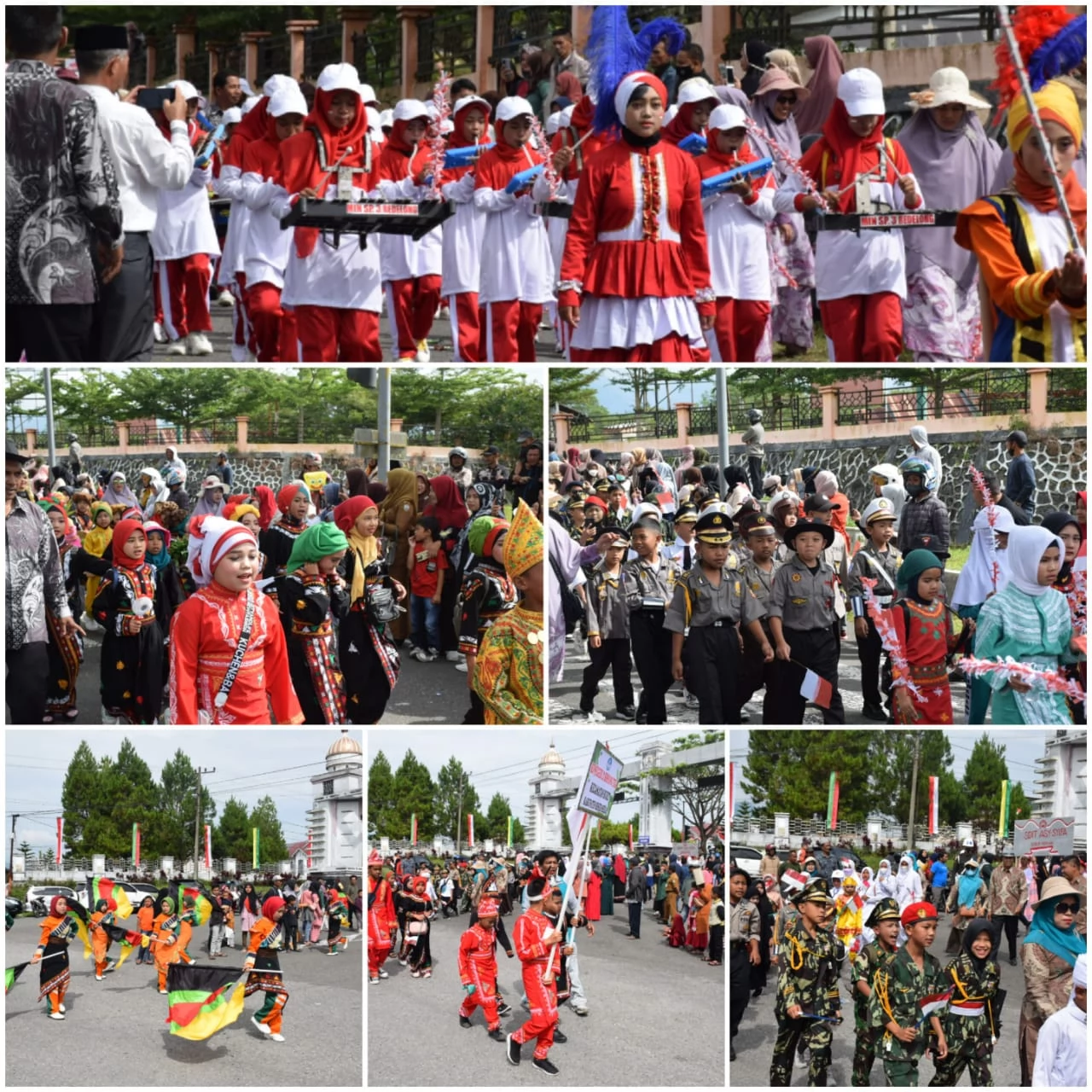 Tampak hadir dalam pelepasan pawai karnaval tersebut seluruh unsur Forkopimda dan Forkompida Plus, para Kepala SKPK, Ketu TP-PKK beserta jajaran pengurus lainnya,para Camat, para Kepala Sekolah beserta dewan guru dan lainnya. (AlFazri)
