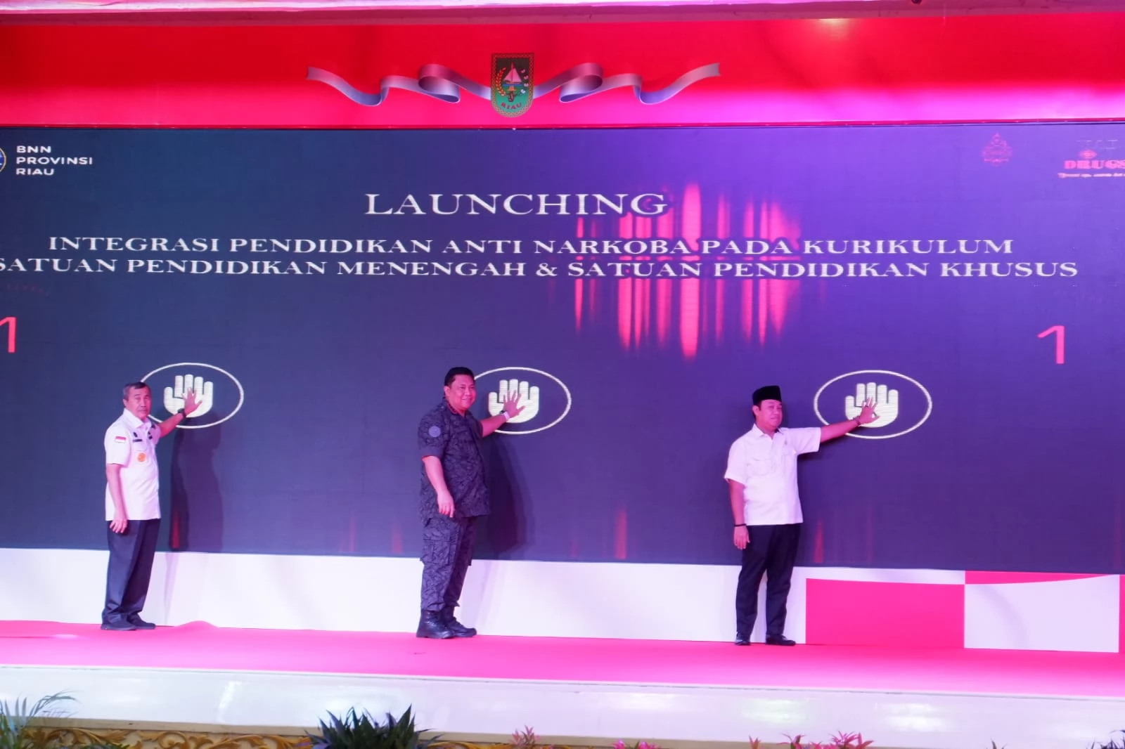 Pekanbaru,lintasliputan.com - Launching Integrasi Pendidikan Anti Narkoba (IPAN) pada kurikulum satuan pendidikan menengah dan satuan pendidikan khusus di Provinsi Riau yang dihadiri oleh Gubernur Riau Drs H Syamsuar, M.,SI, Kepala BNN RI Dr. Petrus R Golose, Kapolda Riau Irjen Pol. Mohammad Iqbal,S.I.K.,M.H, Deputi bidang Pemberantasan BNN RI Drs. Kenedy,S.H.,M.H, Kepala BNN Provinsi Riau Brigjen Pol. Robinson D.P Siregar,S.H.,S.I.K dan juga di hadiri Plt Kadisdik Provinsi Riau M Job Kurniawa,A.P.,M.SI Berlangsung Di Gedung Daerah Balai Selindit Jl.Diponegoro No.20, Simpang Empat, Kec. Pekanbaru Kota, Kota Pekanbaru - Riau, Rabu (24/8/2022).