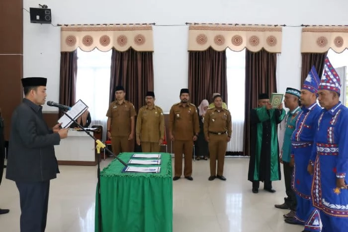 Redelong - Penjabat Bupati Drs. Haili Yoga, M.Si melantik 2 Kepala Mukim Reje Ilang, Kepala Mukim Negeri Antara, Kecamatan Wih Pesam, dan 1 Kepala Mukim Pilar Jaya, Kecamatan Permata, di Aula Setdakab Bener Meriah. Senin (12/9/2022).