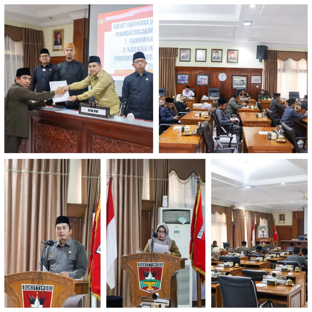 Sambutan H. Erman Safar, SH Walikota Bukittinggi Dalam Rangka Penandatanganan Nota Kesepakatan. Program Pembentukan Peraturan Daerah Kota Bukittinggi Tahun 2023. Dan Kalender Penyelenggaraan Pemerintahan Kota Bukittinggi Tahun 2023. Ia ( H. Erman Safar.SH) Mengatakan Pemerintah Daerah Diberikan Hak Untuk Membentuk Peraturan Daerah Dalam Rangka Pelaksanaan Otonomi Daerah dan Tugas Pembantuan. Pembentukan Peraturan Daerah Oleh Pemerintah Daerah Harus Berpedoman Pada Undang Undang. Agar Pembentukan Peraturan Daerah Lebih Ter-arah dan Terkoordinasi Serta Taat Asas, Secara formal telah ditetapkan Tahapan Proses Pembentukan Peraturan Daerah. Yang Meliputi, Perencanaan, Penyusunan, Pembahasan, Penetapan, Pengundangan Serta Penyebarluaskan. Propemperda Merupakan Instrumen Perencanaan yang di susun secara terencana, Terpadu dan sistematis. Secara Operasional Propemperda Memuat Daftar Rancangan Peraturan Daerah yang disusun Berdasarkan Metode dan Parameter tertentu didasarkan Pada Skala Prioritas yang Sesuai dengan Kepentinggan ,Kebutuhan Hukum Daerah Guna Menunjang Peningkatan Dan Percepatan Pembangunan Daerah. Dengan Pertimbangan Perintah Peraturan Perundang- undangan Yang Lebih Tinggi, Rencana Pembangunan Daerah, Penyelenggaraan Otonomi Daerah Dan Tugas Pembantuan, Dan Aspirasi Masyarakat Daerah. Maka Dilakukanlah Program Pembentukan Peraturan Daerah Kota Bukittinggi Tahun 2023 Antara DPRD Dengan Pemerintah Daerah. Hasilnya Disepakati 14 (empat belas) 3 (tiga) Inisiatif DPRD Kota Bukittinggi dan 11 (sebelas) Dari Pemerintah Daerah Kota Bukittinggi. Rancangan Peraturan Daerah Menjadi Program Pembentukan Peraturan Daerah. Semoga Pembangunan Hukum yang tertuang dalam Program Pembentukan Peraturan Daerah Tahun 2023 Nantinya Betul Betul Mampu Menjawab Kebutuhan Akan Pranata Hukum dan Perundang Undangan. yang tidak Lain dan tidak Bukan Sebagai upaya Peningkatan Kesejahteraan Warga Masyarakat dalam Segala dimensi Kehidupan. Disampaikan H. Erman Safar.SH. dalam Kata Sambutanya Hari Senin tanggal 24 Oktober 2022 di Ruangan Sidang DPRD Kota Bukittinggi. Dengan Ditandatanganinya Nota Kesepakatan Kalender Kerja Pemerintahan Daerah Kota Bukittinggi Tahun 2023. Yang Berarti Pemerintahan Kota Bukittinggi Telah Berkomitmen Untuk Melaksanakan Agenda Penyelenggaraan Pemerintahan dan Pembanggunan Kota Bukittinggi Tahun 2023. Hadir Pada Acara Ini Ketua , Wakil Ketua dan Anggota Dewan Perwakilan Rakyat Daerah Kota Bukittinggi, Anggota Forum Koordinasi Pimpinan Daerah, Ketua Pengadilan Negeri Bukittinggi, Ketua Pengadilan Agama Kota Bukittinggi, Sekretaris Daerah, Asisten Di Lingkungan Sekda, Kepala Dinas, Kepala Badan Kepala Kantor, Kepala Bagian, Camat dan Lurah Kota Bukittinggi, Niniak Mamak, Bundo Kanduang, Cadiak Pandai, Alim Ulama, Rekan - Rekan Pers, dan Hadirin Para Undangan (media lintas liputan/montes)