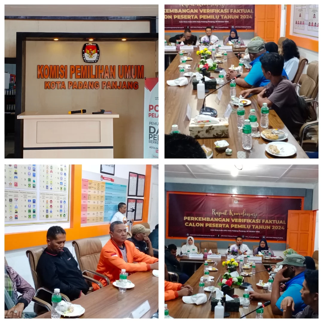 Ketua KPU Kota Padang Panjang Okta Novisyah.S.Sos.i . Dalam Acara Rapat Koordinasi Dengan 7 Partai Politik Calon Peserta Pemilu Tahun 2024. Di Kantor Komisi Pemilhan Umum Kota Padang Panjang Jl. Syeh.M.Jamil Jaho No. 4 A Kel Guguak Malintang. Hari Saptu Tanggal 29 Oktober 2022 Mengatakan.