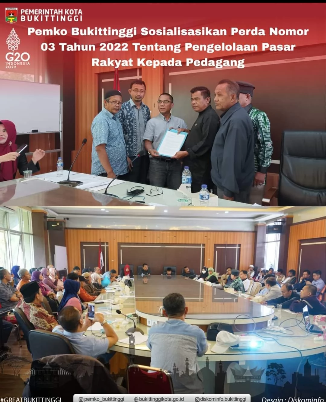 Pemerintah Kota Bukittinggi sosialisasikan Peraturan Daerah (Perda) nomor 03 tahun 2022, tentang Pengelolaan Pasar Rakyat.