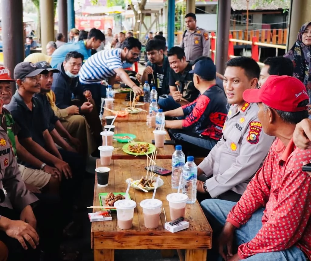 KEPULAUAN MERANTI - Kapolres Kepulauan Meranti AKBP Andi Yul Lapawesean Tendri Guling didampingi Wakapolres Kompol Robet Arizal bersama jajaran, mendatangi kawasan Tubir Telaga Bening, di Jalan Merdeka, Kota Selat Panjang, Selasa (8/11/2022) sore.