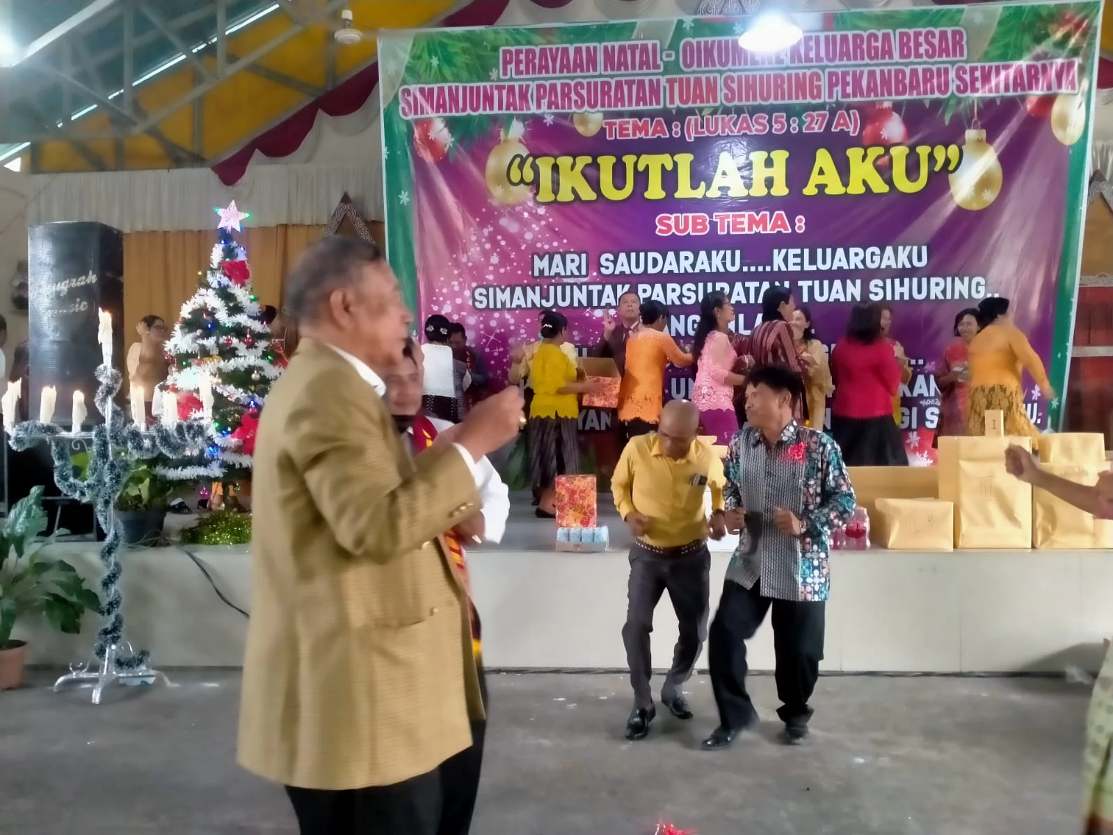 Pekanbaru - Perayaan Natal Oikumene Keluarga Besar Simanjuntak Parsuratan Tuan Sihuring Pekanbaru sekitarnya yang dilaksanakan pada hari Minggu di Gedung Aula Serba Guna jalan Rajawali Panam Pekanbaru dengan Tema : (LUKAS 5 : 27 A) " Ikutlah Aku" dan Sub Tema "Mari saudaraku, keluargaku Simanjuntak Parsuratan Tuan Sihuring Bangunlah,Tuhan Yesus Memanggilmu, Ikutlah untuk menghasilkan Buah Imanmu yang Harum dan Manis BAGI SESAMAMU" . Minggu (4/12/22)