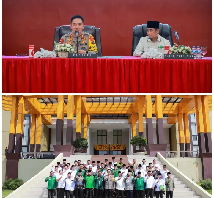 Pekanbaru - Pengurus Nahdatul Ulama Provinsi Riau (PWNU) lakukan Audiensi dengan Kapolda Riau di lantai 5 Mapolda Riau ,jalan Pattimura. Senin (26/12/22 ).Dalam Kesempatan audiensi tersebut, Ketua Tahfiz Nahdatul Ulama Riau, H.T.Rusli Ahmad SE,MM menyampaikan beberapa hal, diantaranya adalah susunan pengurus Nahdatul Ulama Provinsi Riau kepada bapak Kapolda Riau, mulai dari tingkat Provinsi sampai ke tingkat Kabupaten/Kota Yang ada di provinsi Riau.